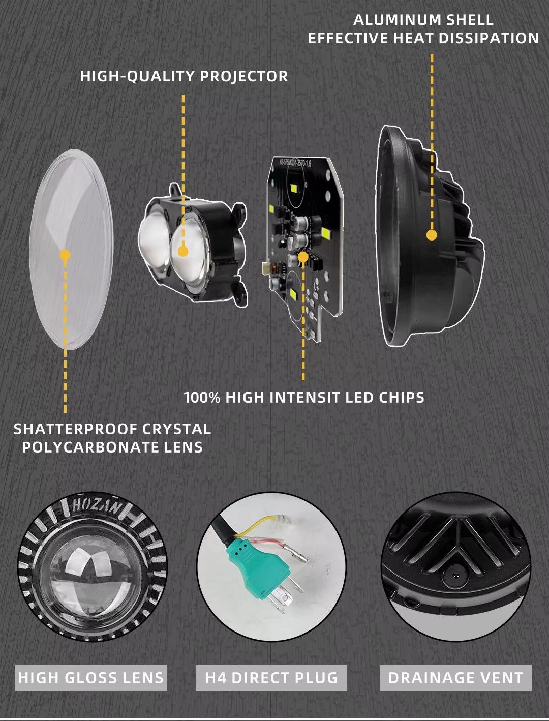 HOZAN Best-Selling 7-inch Turbo RGB Headlight